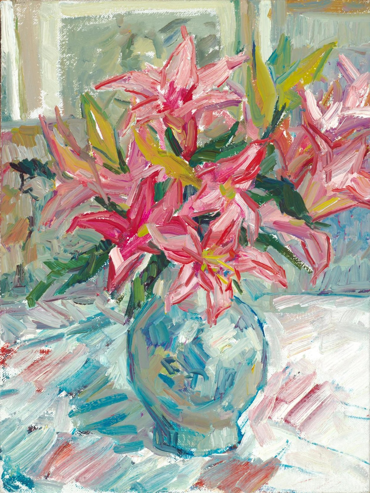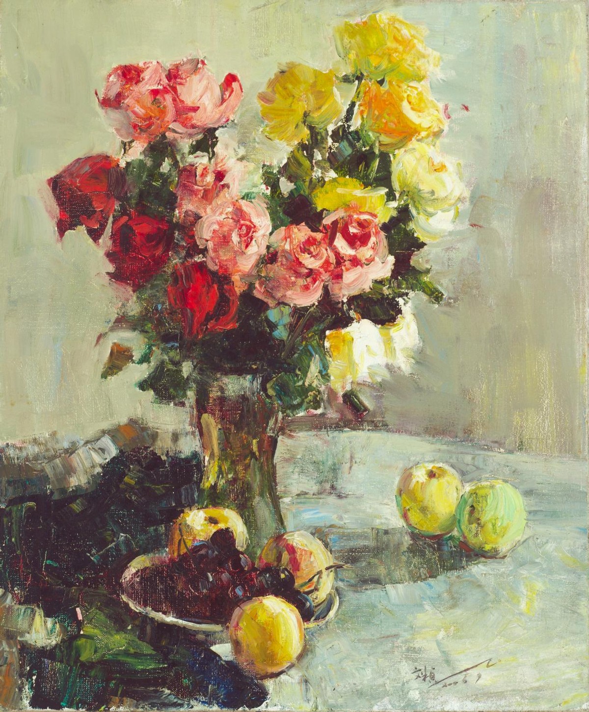 擅长于油画静物,侧重于花草主题。多以喻意手法。发扬生涯的多种情绪,敬佩花儿是大当然最纵欲的言语,色调亮堂,淳朴,关怀奔放,在色调的层层掩饰与色层的交汇中谱写纵欲与好意思的虚幻。